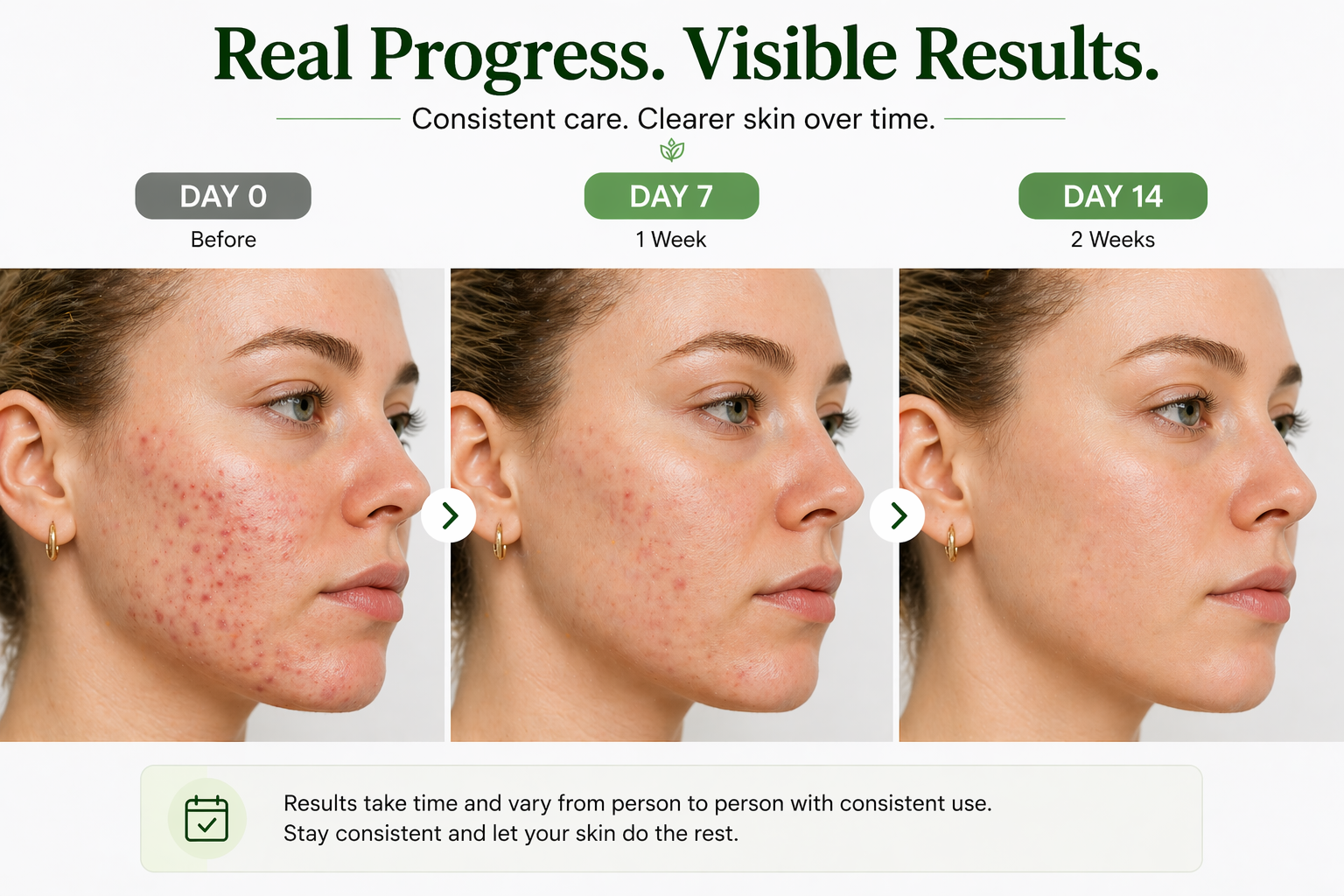 Individual Results May Vary: Results depend on individual skin type, sensitivity, and consistent use. Visible improvements typically appear after 4-6 weeks of regular application. Individual experiences may differ.